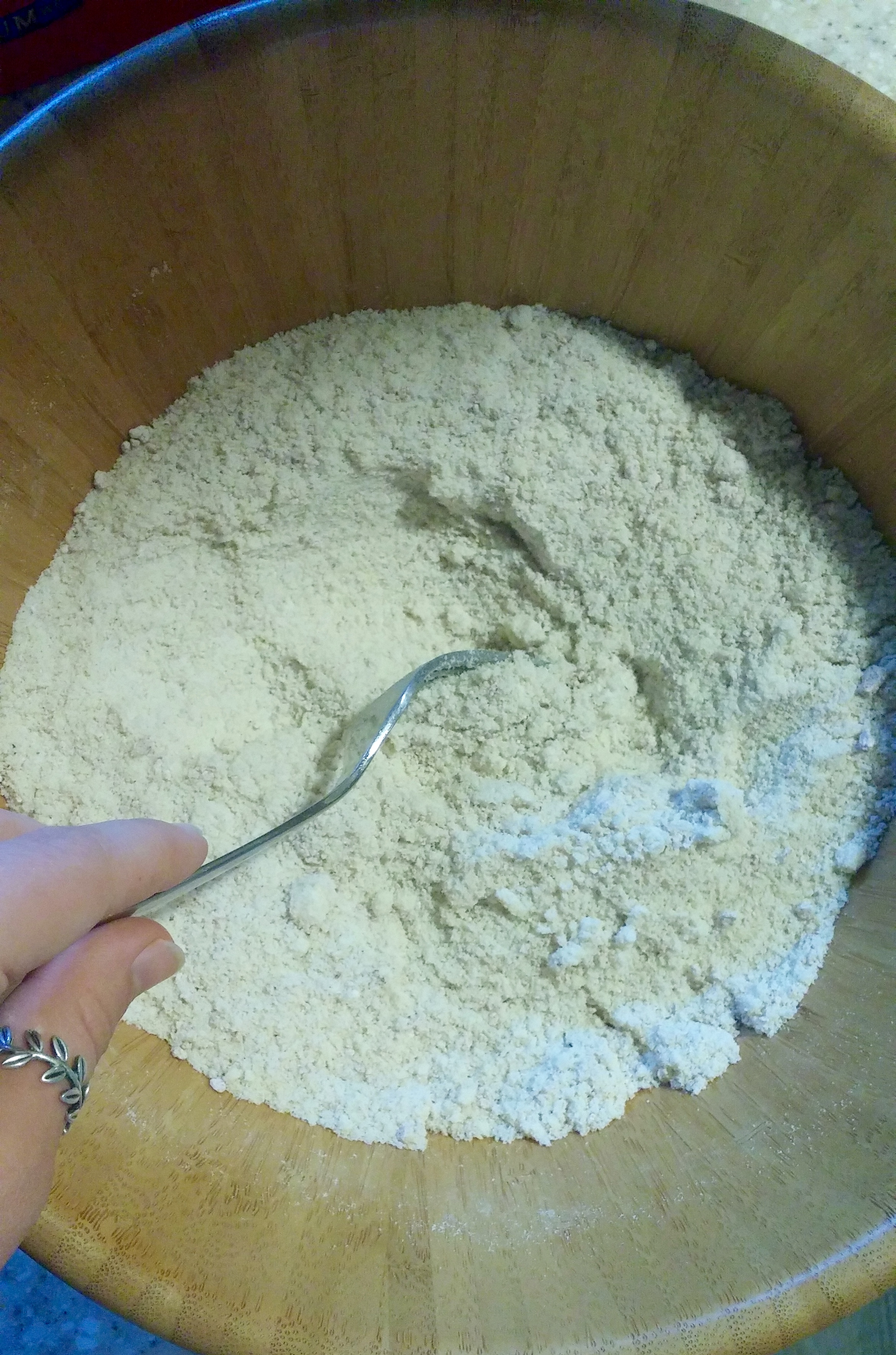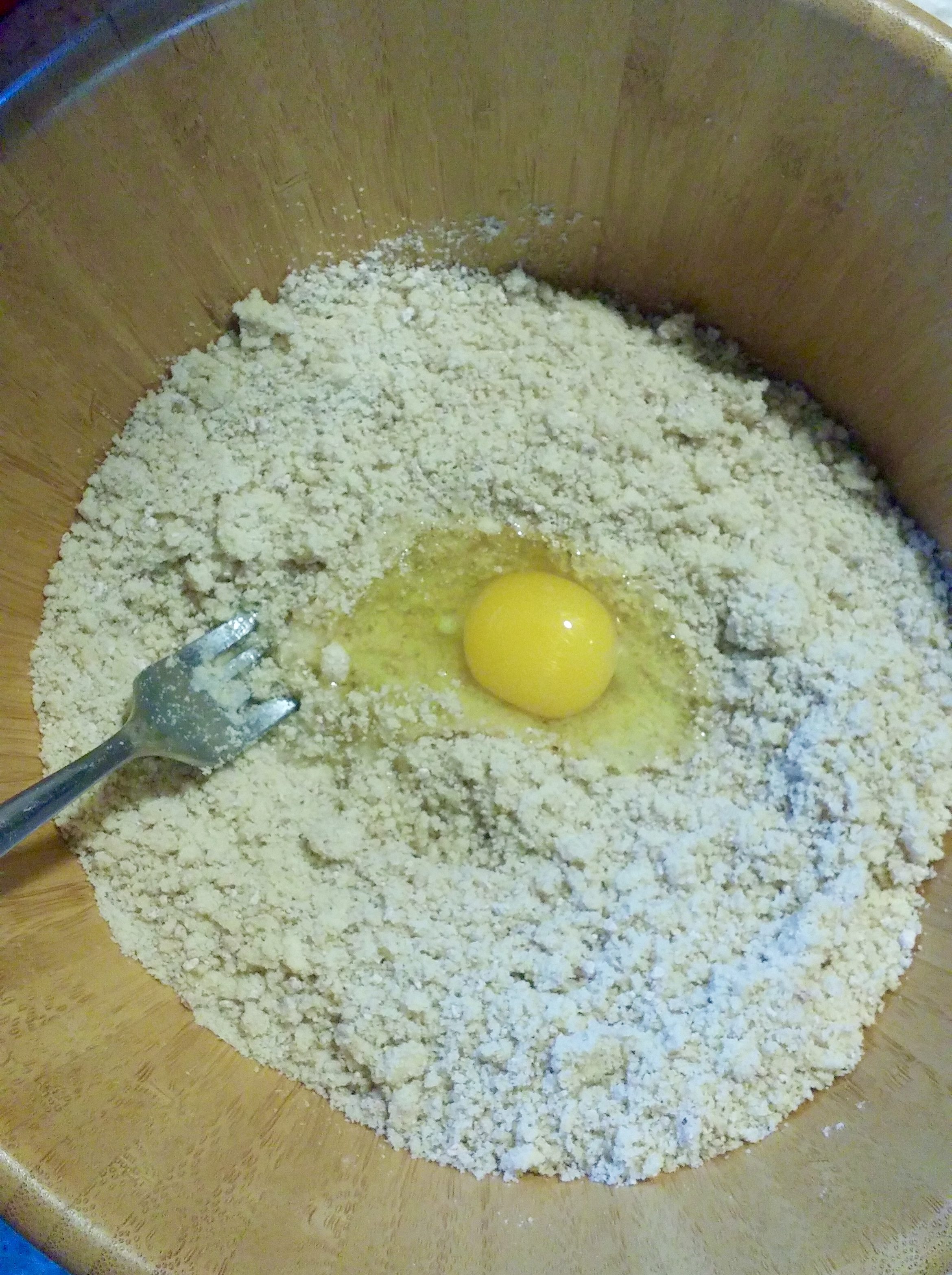 -Mix the flours and add in cubes of cold butter and press with a fork or the fancy baking tool that was created for this (haha)a